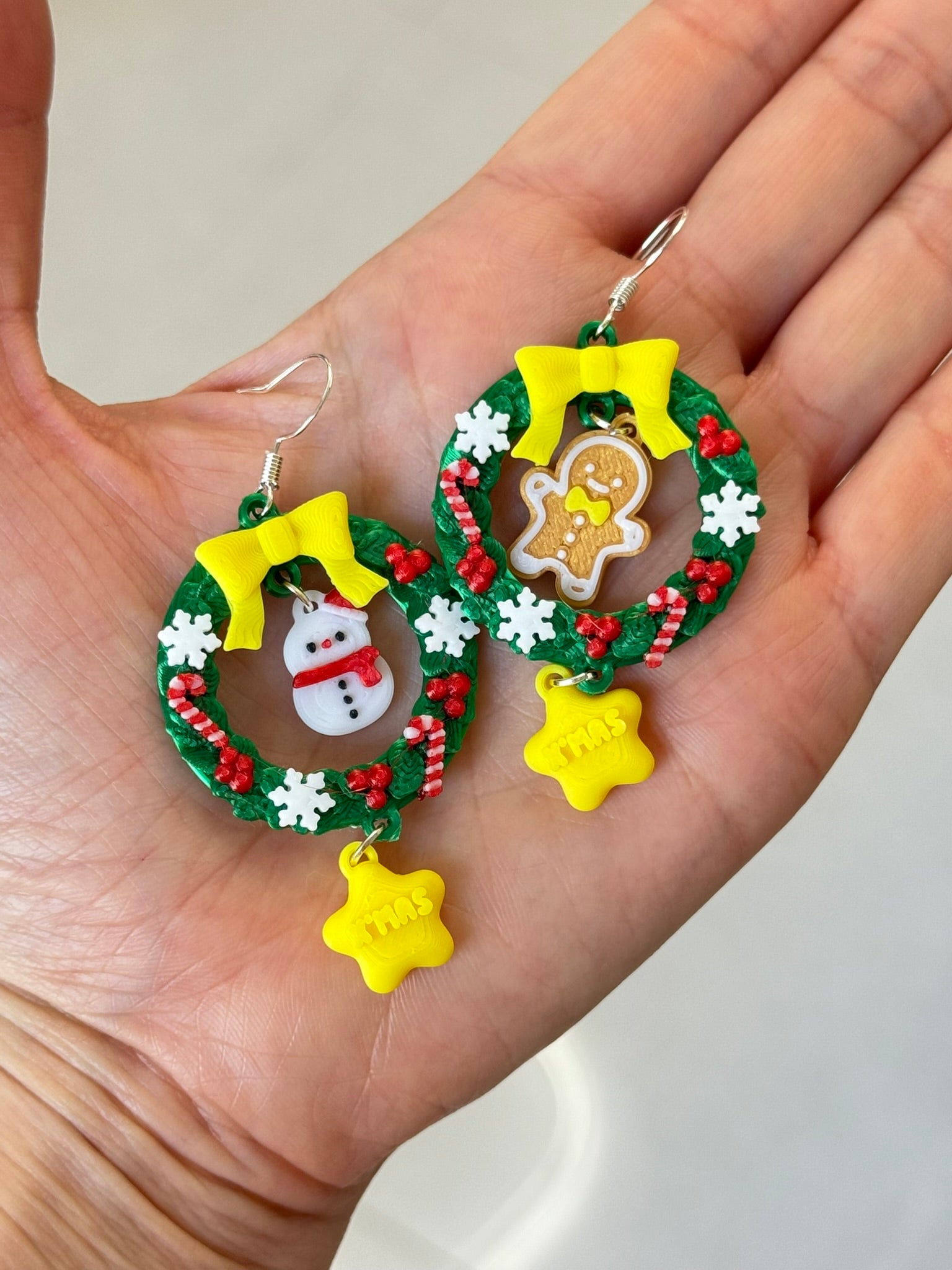 Add a sprinkle of holiday magic to your outfit with our handcrafted Christmas Wreath Earrings!