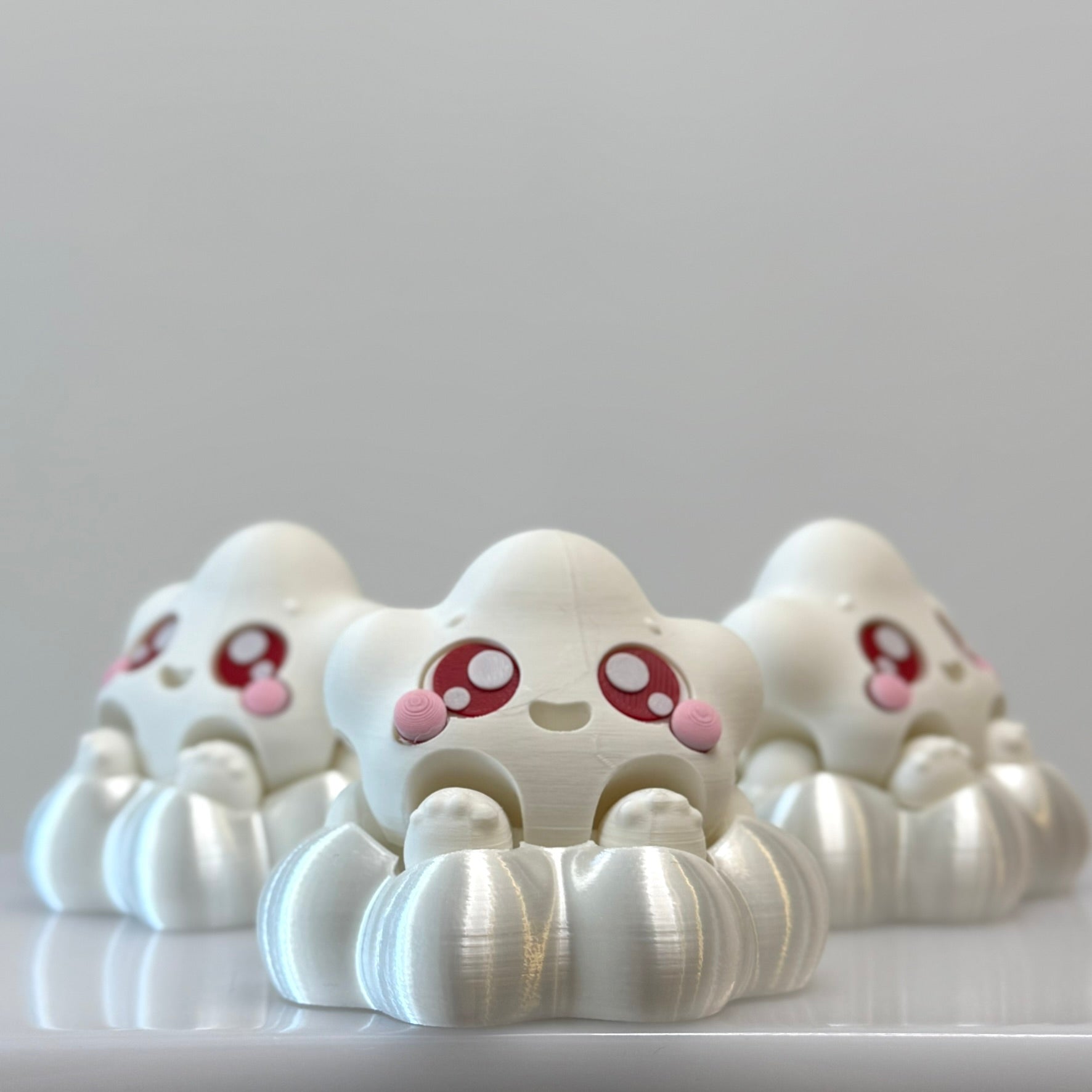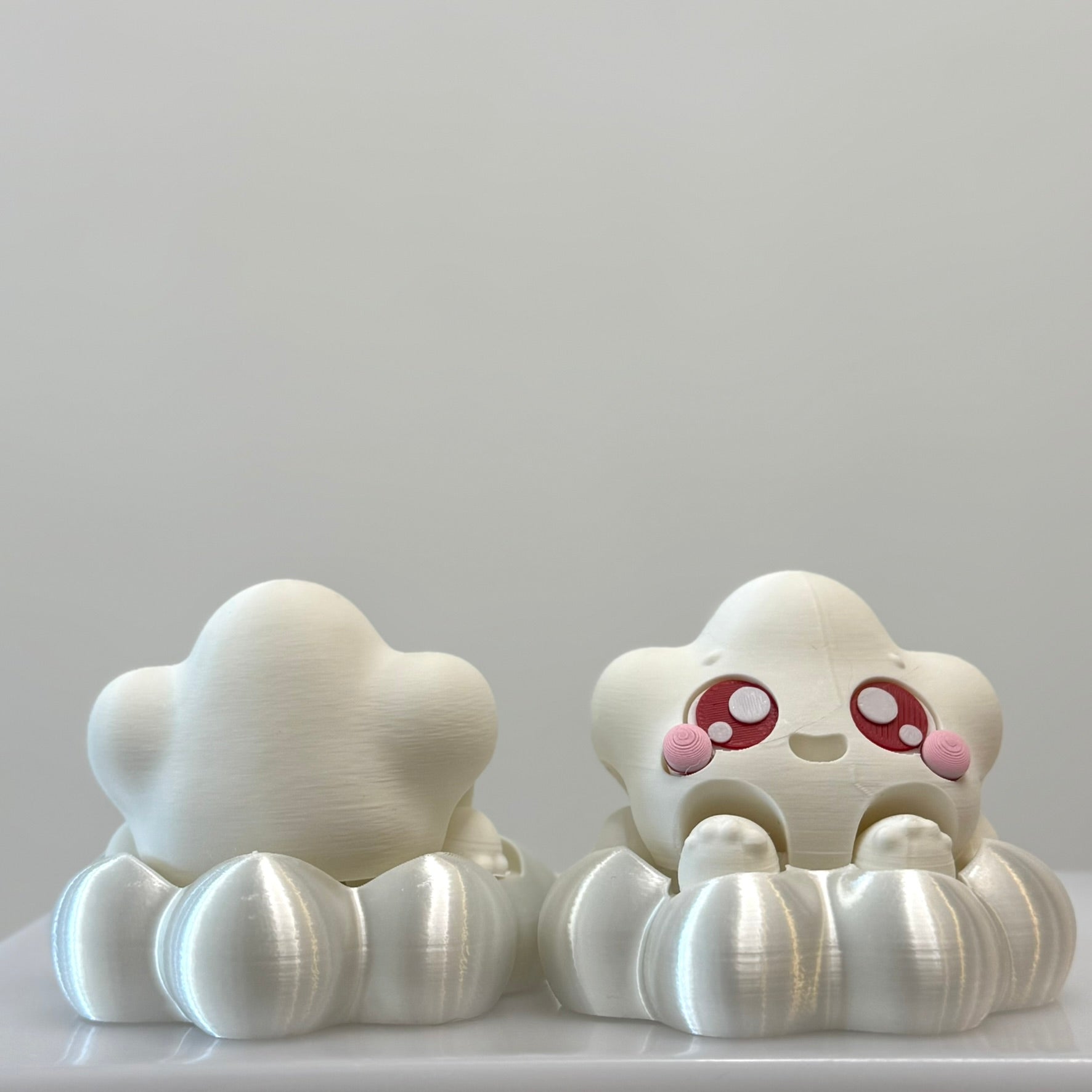 Soft, squishy vibes in a 3D-printed hug. Meet Cloudie—your pocket-sized cheerleader with rosy cheeks and sparkly eyes, ready to float into your day with joy.