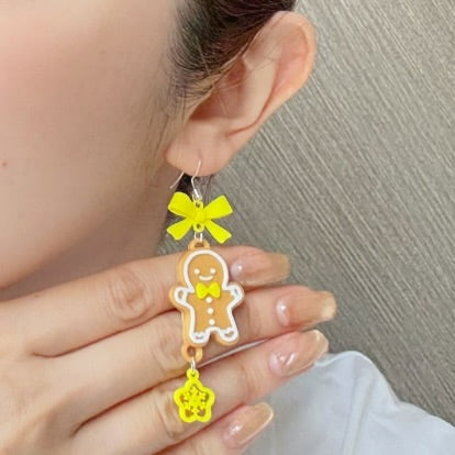 Gingerbread Man with yellow bow Earrings