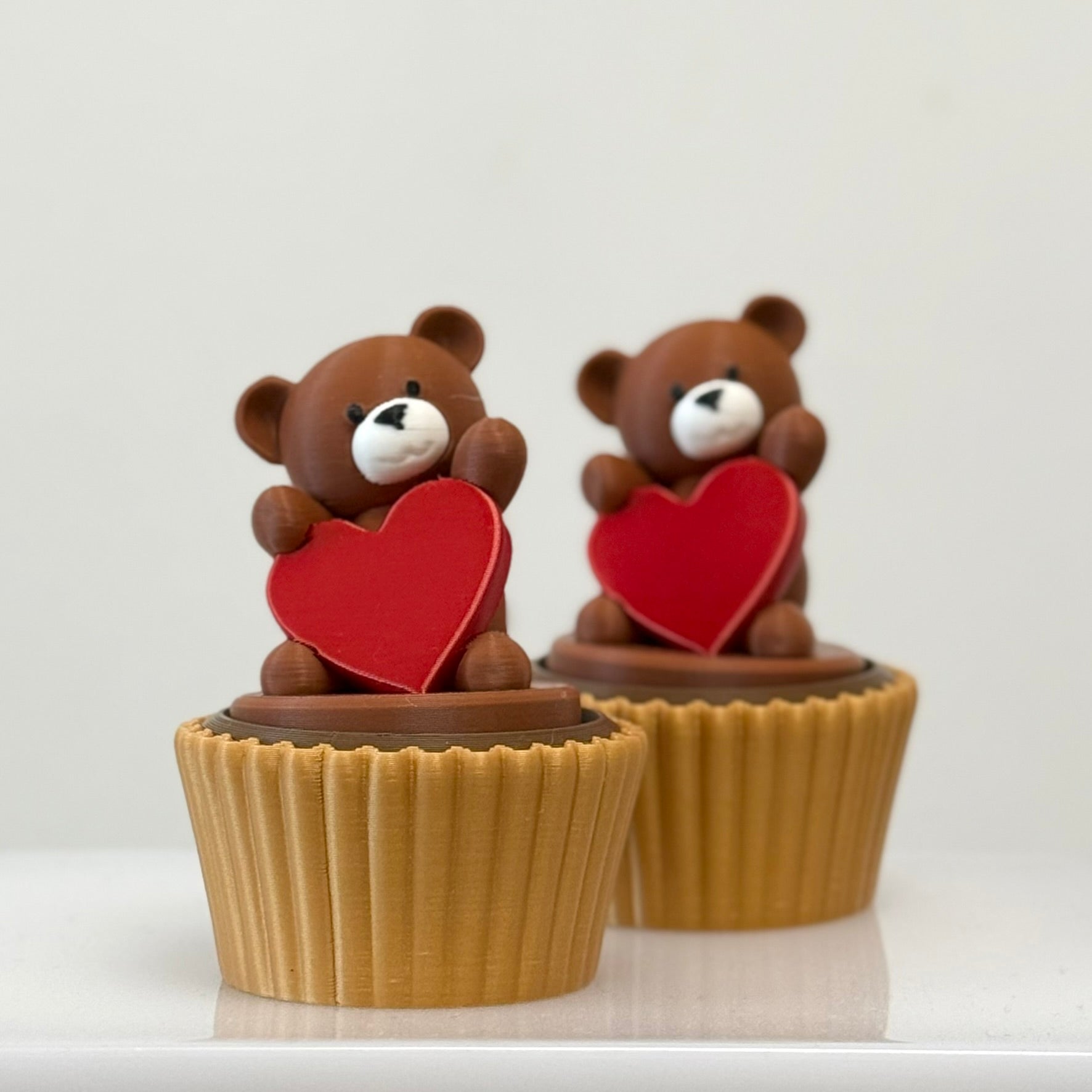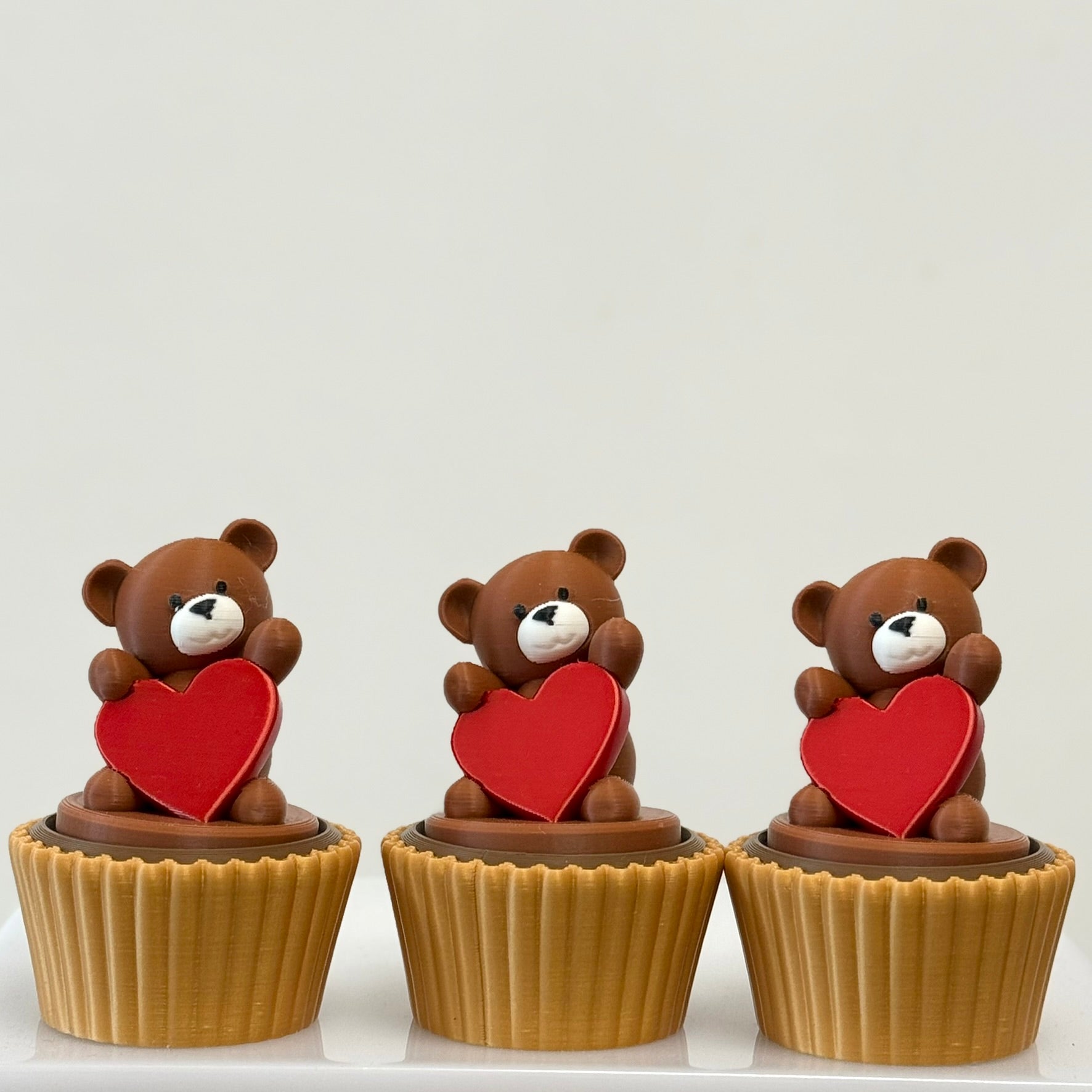 Sweetly soothing! This lovable bear sits atop a cupcake-style base, clutching a bright red heart—ready to deliver comfort with every click.