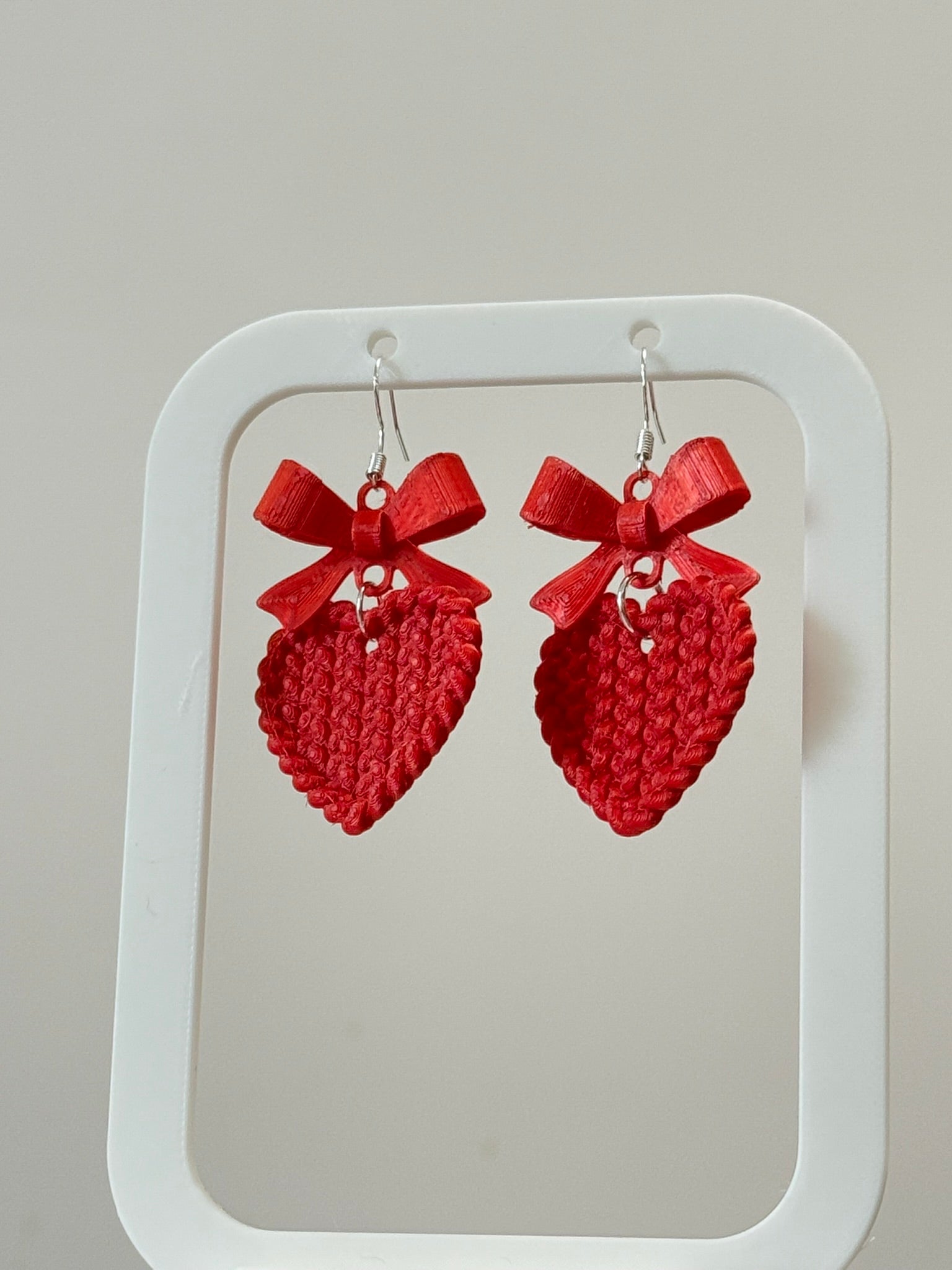 Woven Heart Earrings – Red Bow Edition