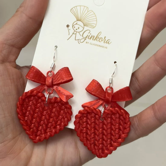 ❤️ Woven Heart Earrings – Red Bow Edition